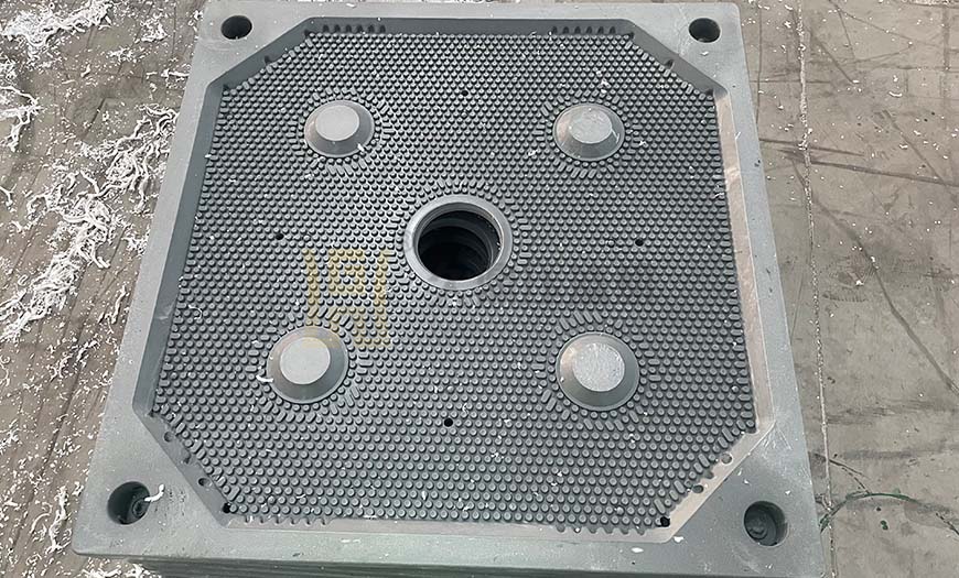 生產的板框式、廂式、隔膜式壓濾機的濾板可分為以下幾種材質:增強型聚丙烯濾板、玻纖聚丙烯濾板、橡膠隔膜濾板、高壓聚丙烯隔膜濾板、鑄鐵濾板、不銹鋼濾板等。按進料方式可分為:中進料、角進料、上中進料等。